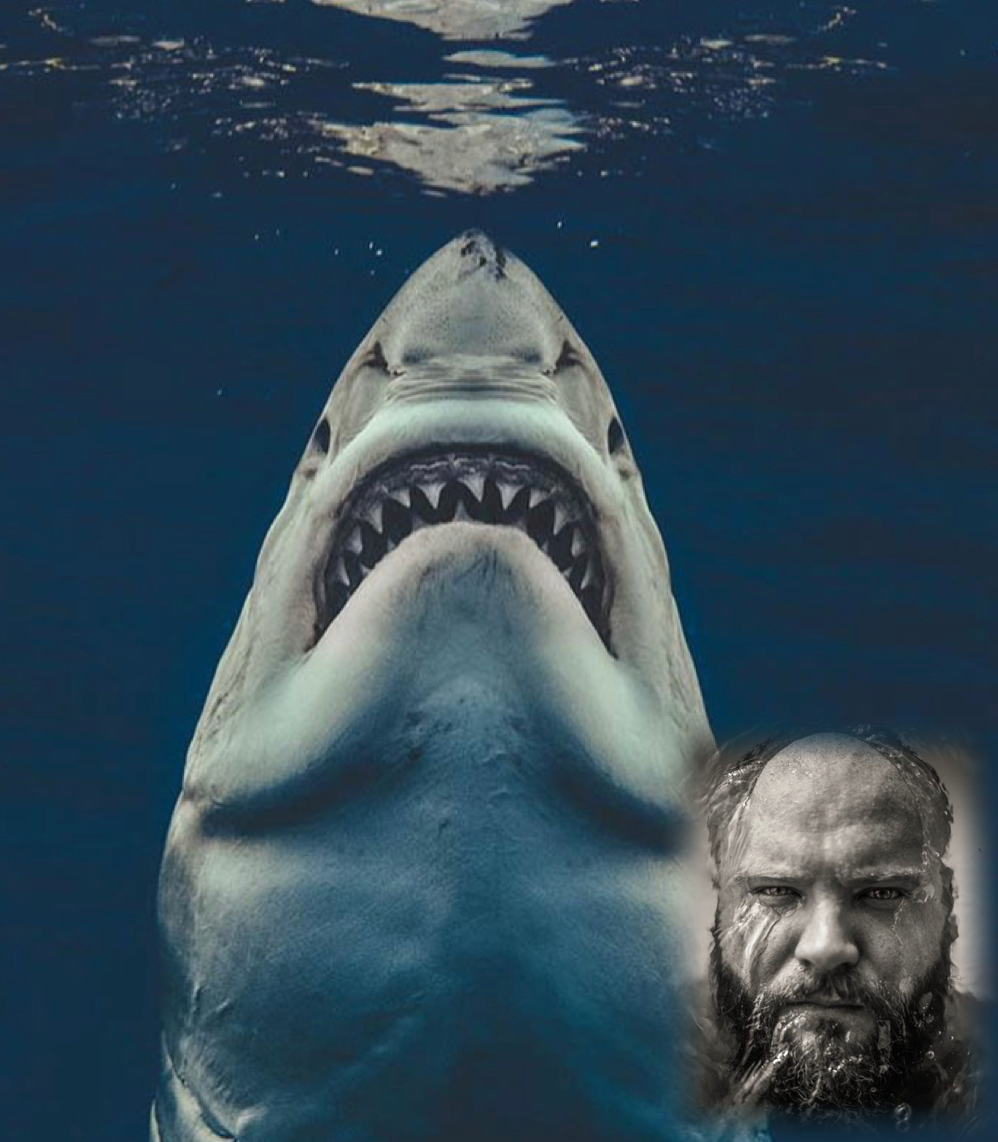 ER: I mean its got to be Quint! I even have his face on the outside of my dive case! Hmmm favorite scene, "your gonna need a bigger boat" sequence comes to mind first off. White sharks love sneaking up one us all the time in the cage and when we are standing on the dive deck so its not far fetched at all.