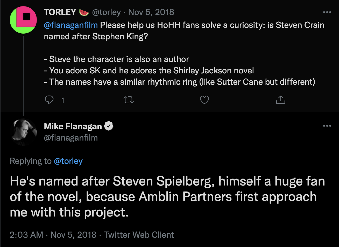 Flanagan said: "I began to fall in love with filmmaking by noticing each department at work in Jaws. I would watch it and be studying the composition and the cinematography, and was the first time that lightbulb went off and I even understood what those things were."