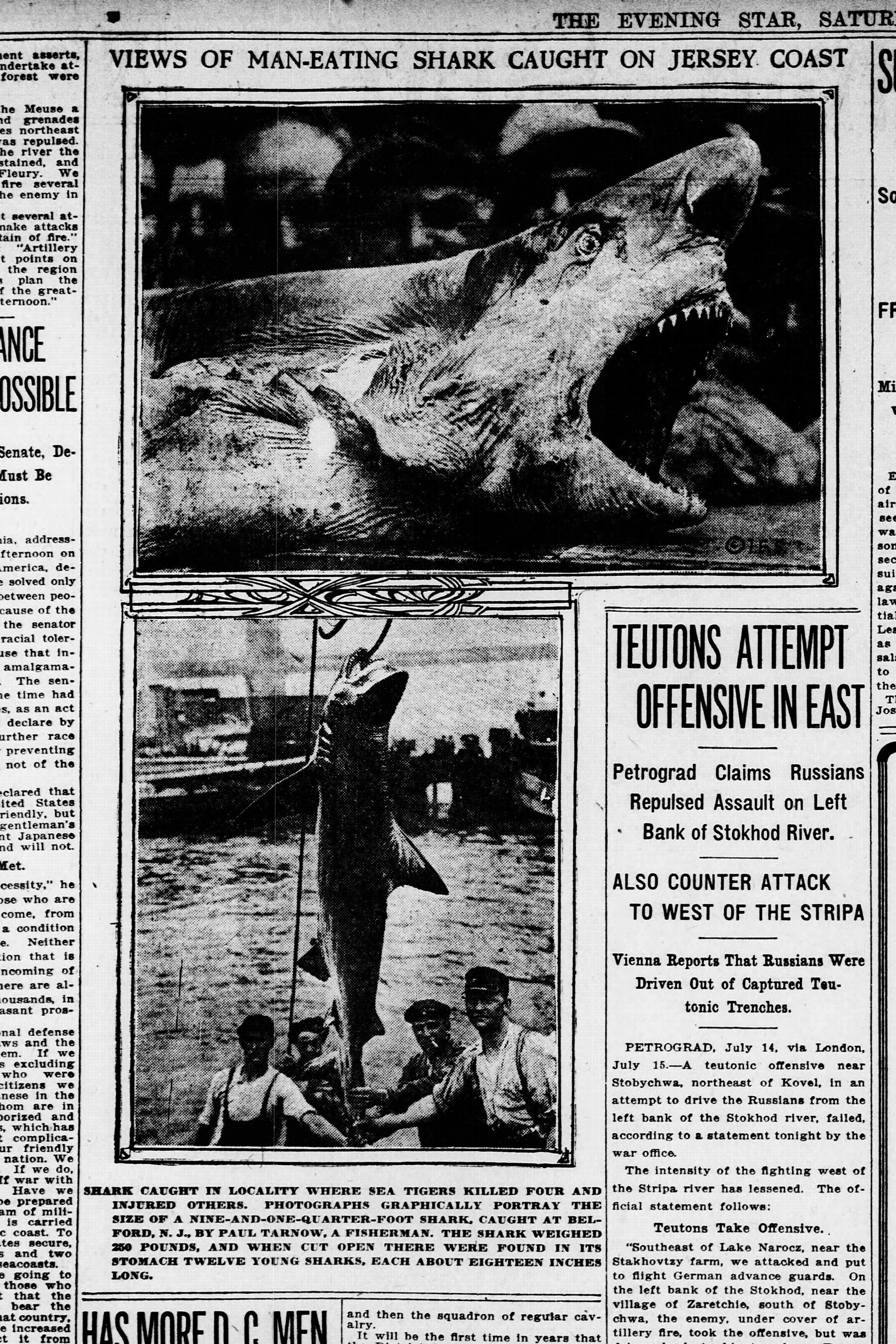 It even knocked the events of World War One from the front of newspapers in the US, and was discussed by the President. The attacks were a watershed moment for sharks, as until then scientists believed they wouldn't come close to humans, and certainly weren't dangerous.
