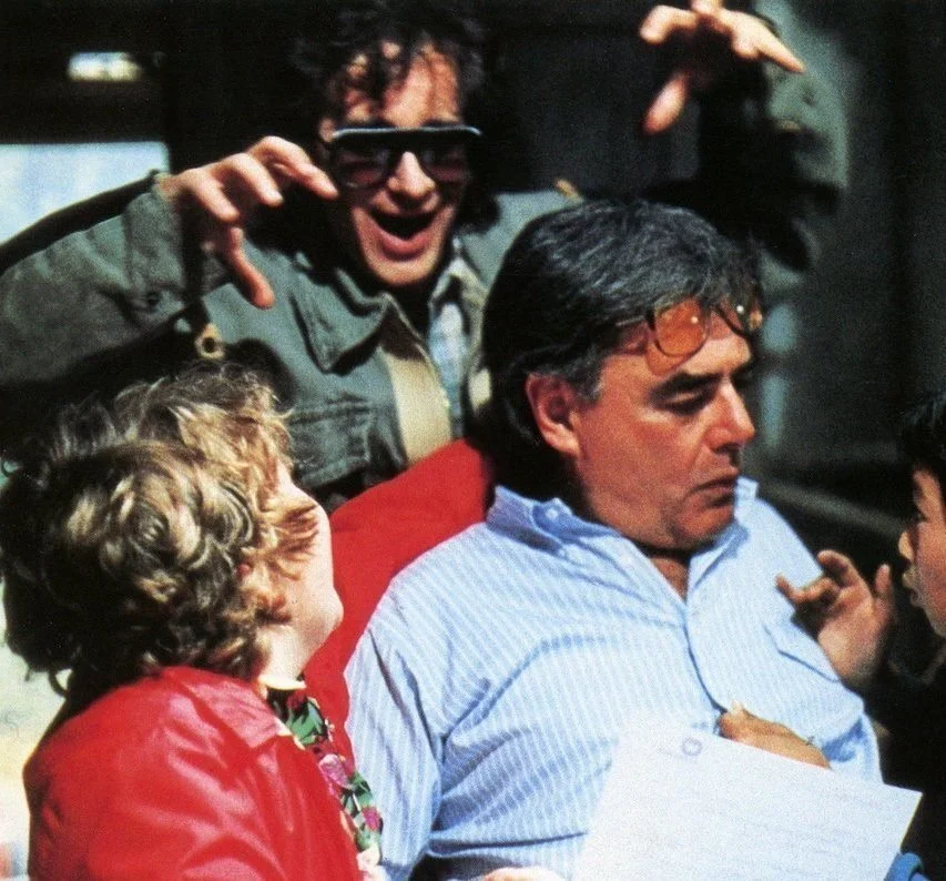 Richard Donner (right) with Jaws director Steven Spielberg and actor Jeff Cohen on the set of The Goonies