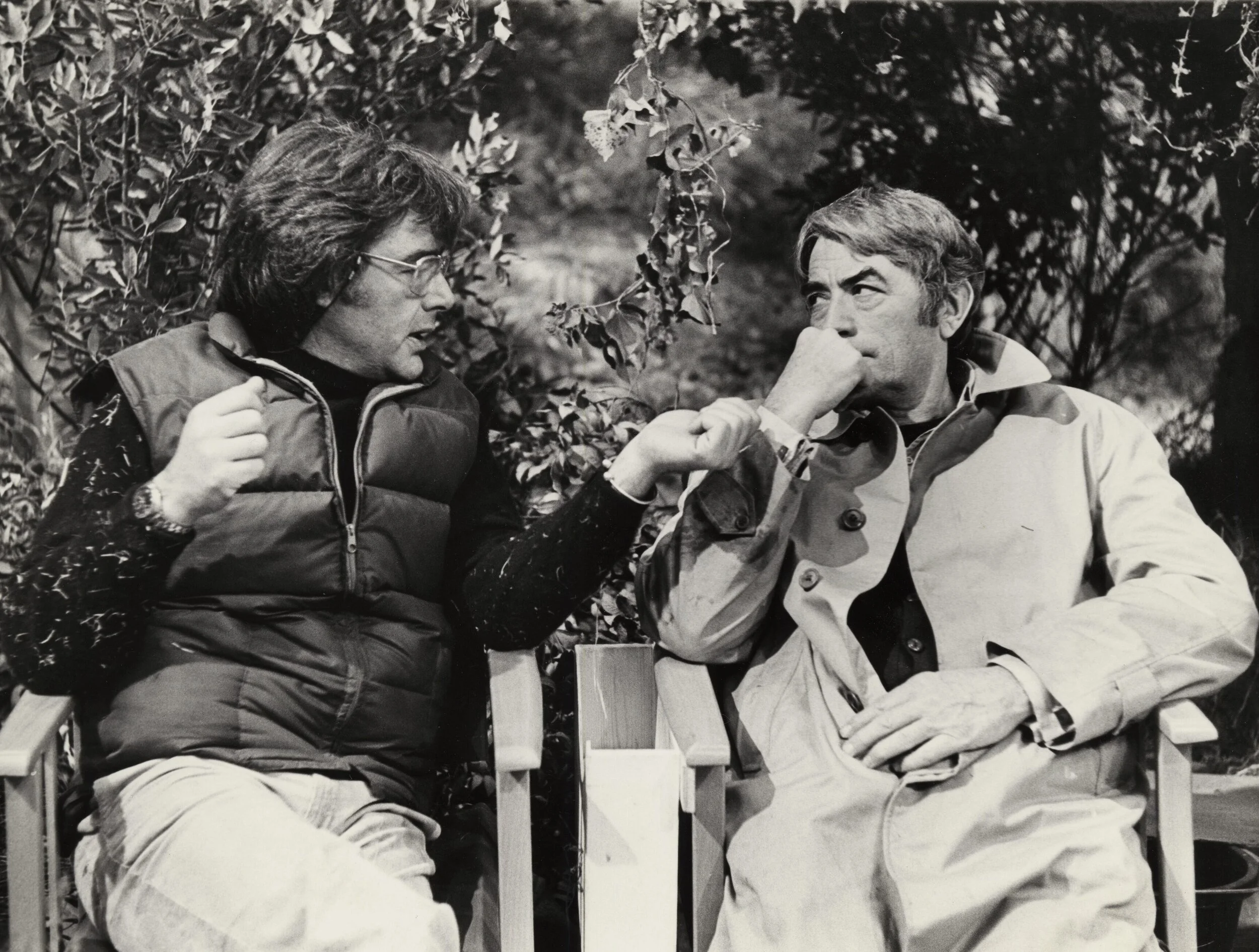 Richard Donner (left) with star Gregory Peck on the set of The Omen