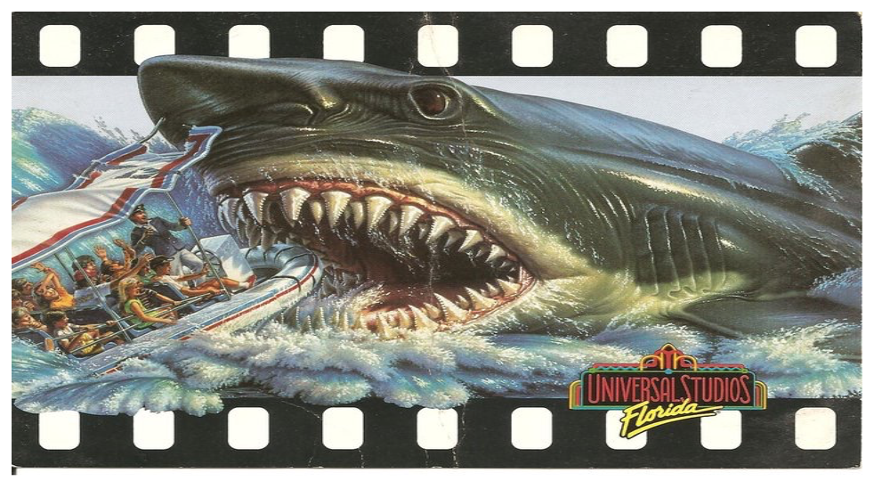 But lets leave the cinema screen for a moment and look at what Universal parks cooked up in the aftermath. Since the movie became such a huge hit, it was only a matter of tine before an attraction based on the film was incorporated into the theme park universe. In 1976, a scene from the film was included in the studio tour where the guests drove by a lake in a tram car, and a shark would jump out of the water and scare you.