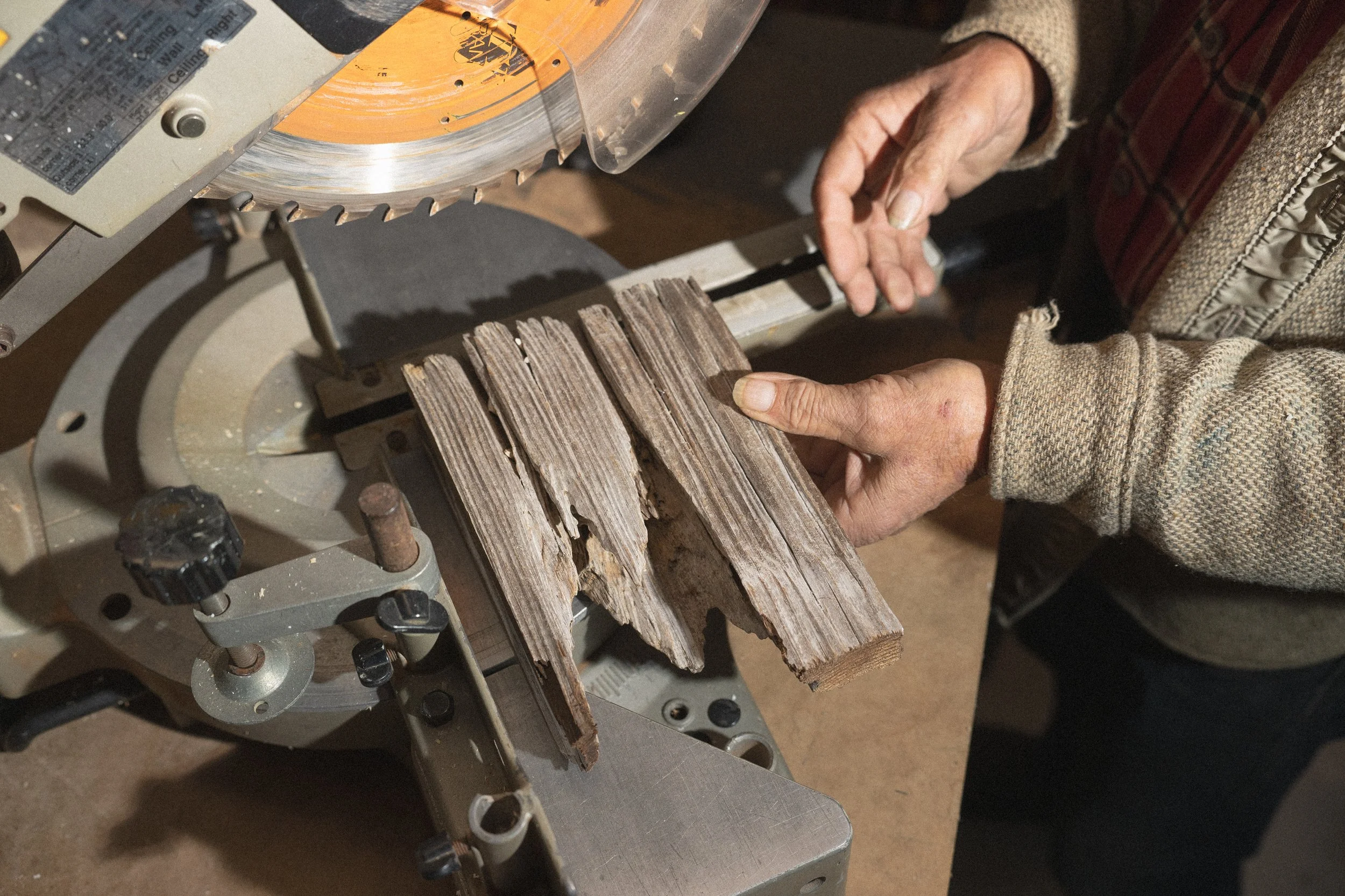 Full circle: for the book's limited edition, Jaws set carpenter Eric Ropke manufactures a piece of the dock that he built for the film in 1974.