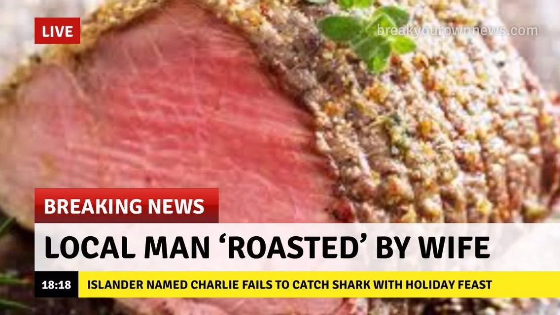 When wife is sleeping, quietly take the roast out of the refrigerator. Take it down to the dock and insert a large hook in it. Attach a chain to the eye of the hook and throw it into the water. Order Chinese food for dinner