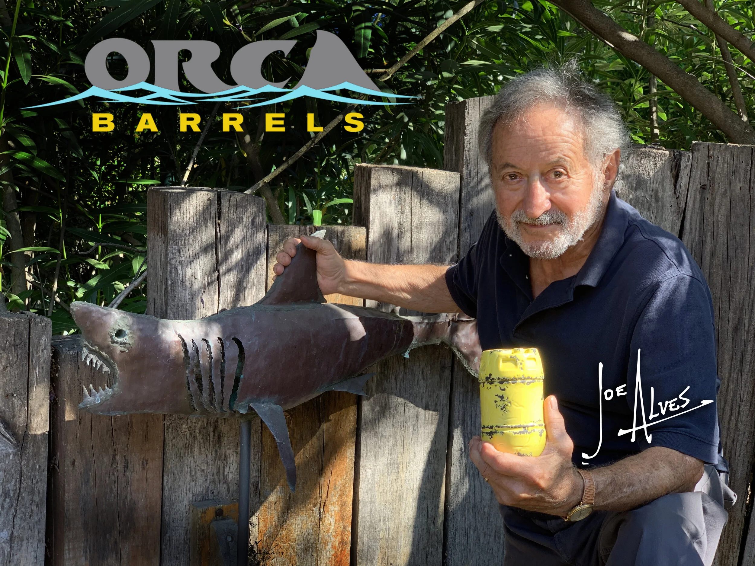 Jaws Production Designer Joe Alves with one of the Orca Barrel mugs.