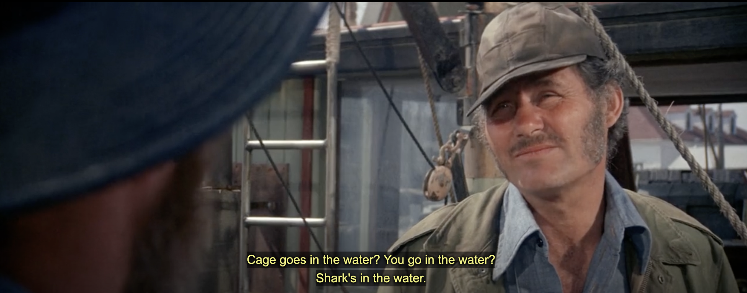 Robert: Hard to pick, but off the top of my head. Quint: "You go in the cage, cage goes in the water, you go in the water. Shark's in the water, our shark. Farewell and adieu." .. you know you can hear it in your head right now.