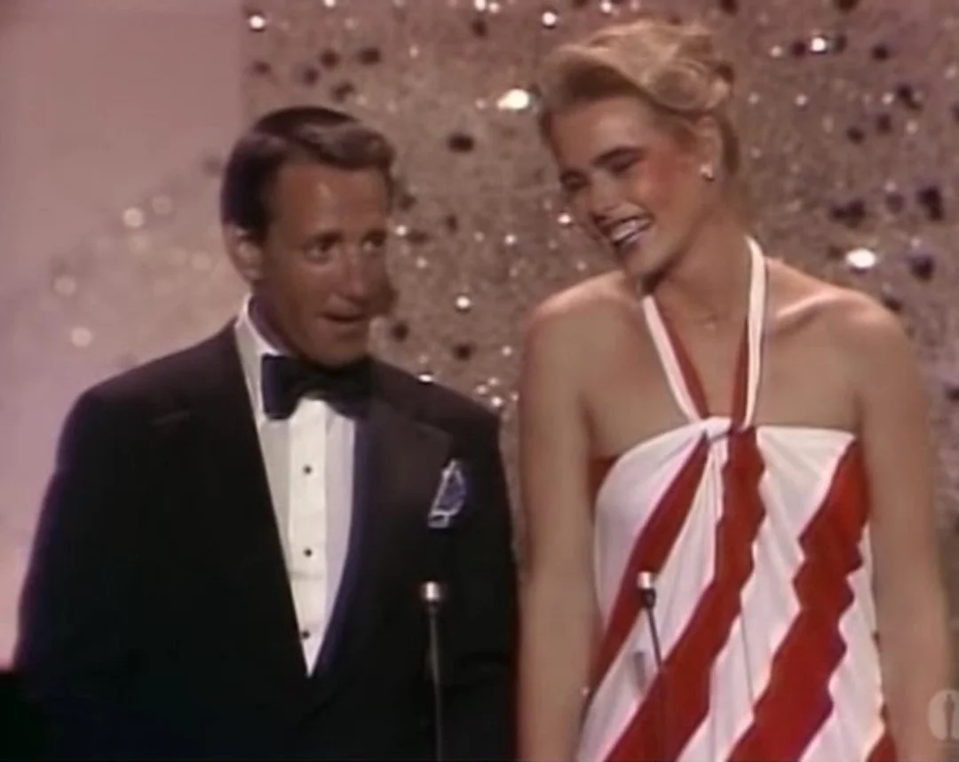 Roy Scheider and Margeaux Hemingway presenting the Academy Award for Best Sound (1976)