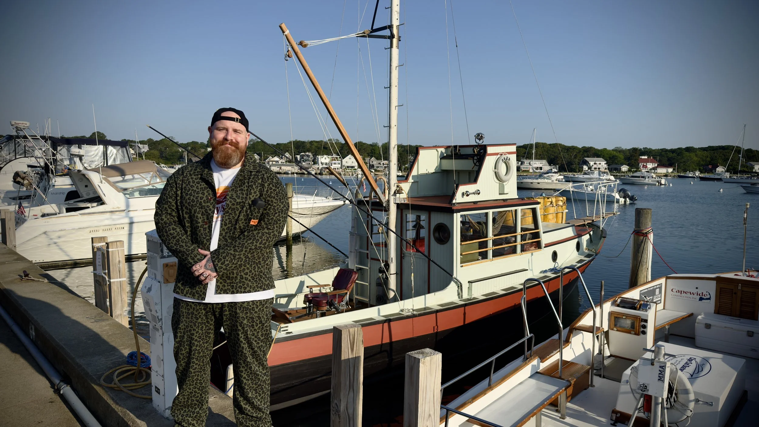 John Campbell, creator of ‘Island’ poses in front of a replica of ‘The Orca’