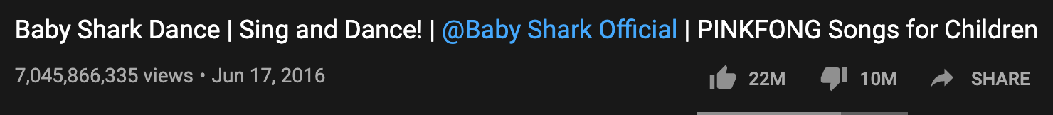 7 billion views and 22 million likes makes Baby Shark the most watched video on YouTube - ever!