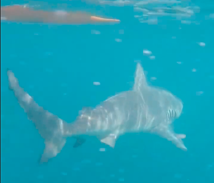 “Obviously this can be dangerous but luckily sharks don’t really mess with kayaks. I have never had any bad encounters with sharks in more than 17 years. I’ve only been bumped a few times by bull sharks and circled by the occasional curious hammerhead,” he added. Credit: Adam Fisk via Storyful.